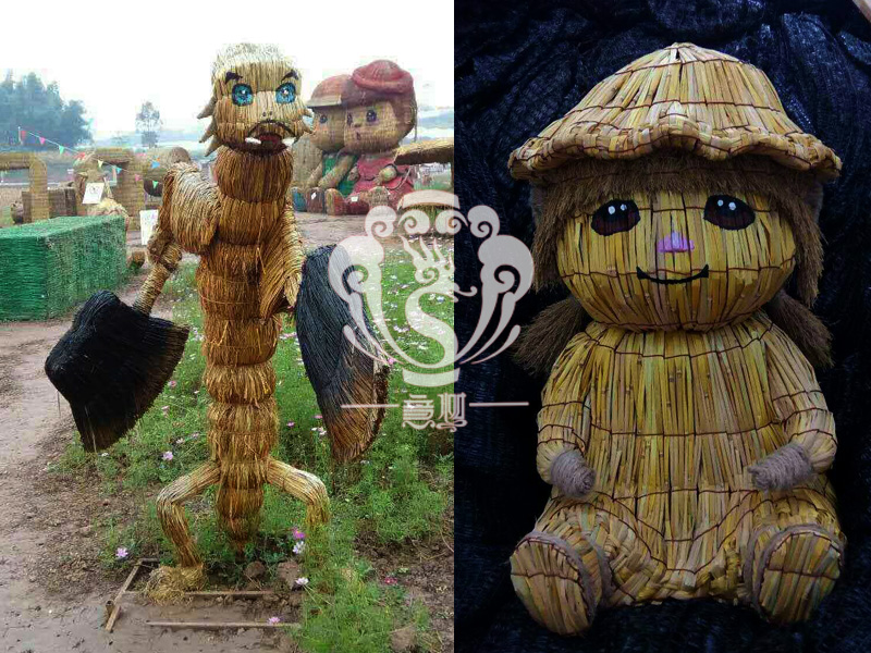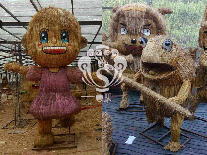 現在的精致稻草人藝術通常是由專業美術老師的造型放樣,然后由焊工師傅焊接出立體造型造型,然后以稻草或者稻草繩為材料編捆制作而成。
