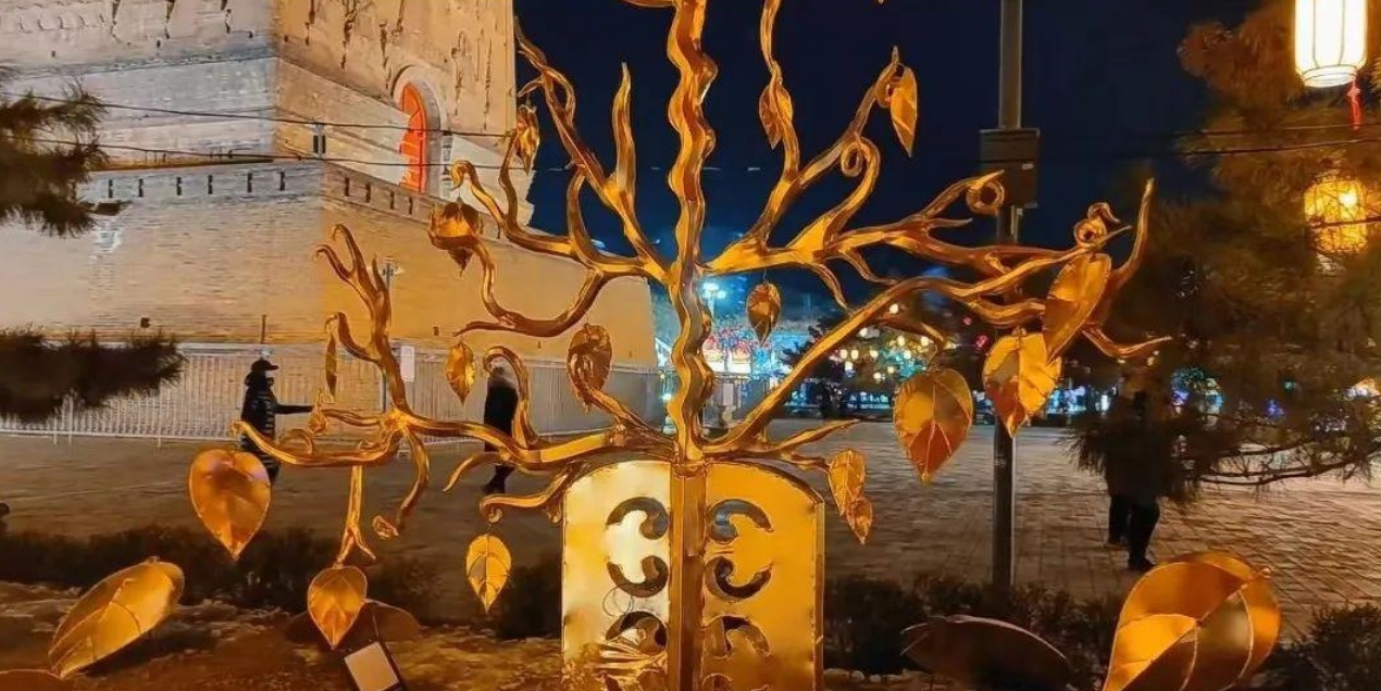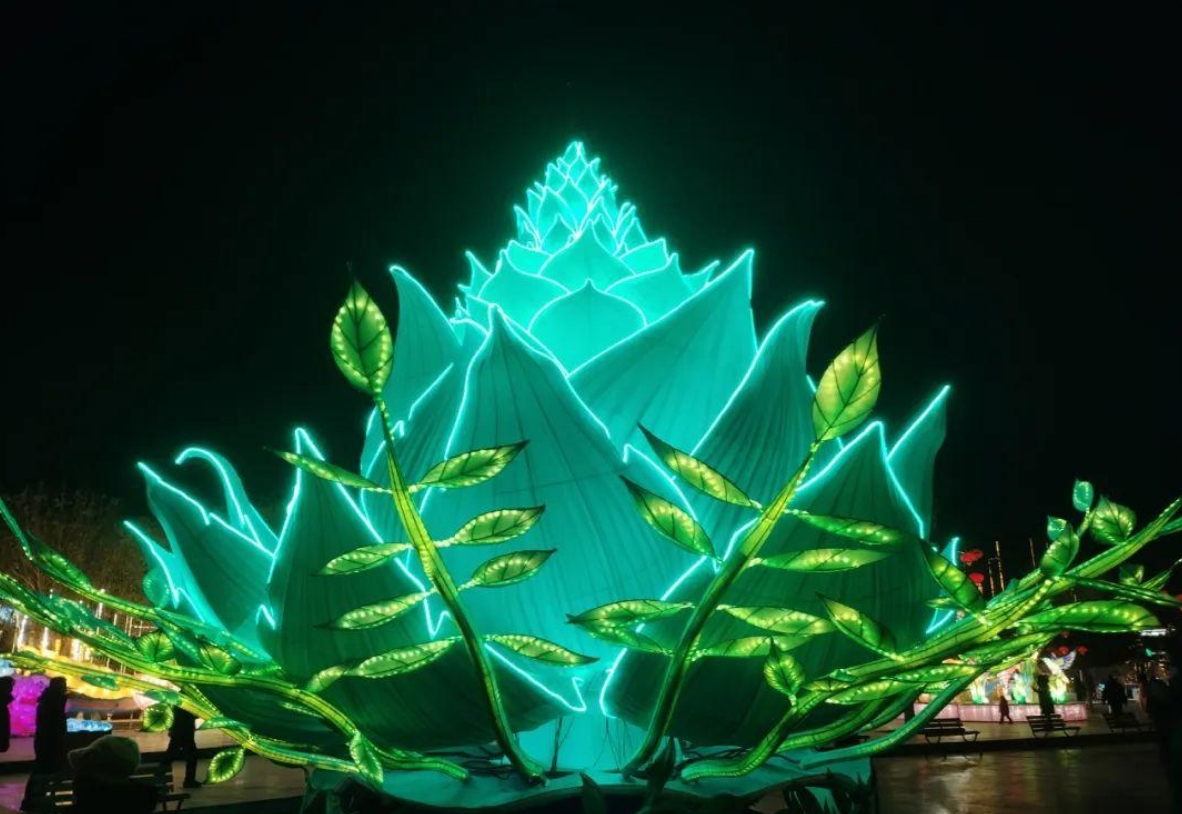 大型燈組“龍騰盛世”,創意源于朝陽三燕龍城宮城南門遺址,城門兩側設置雙龍騰躍的龍年主題造型,寓意龍騰盛世的繁華景象,體現朝陽作為三燕古都的厚重歷史。“金步搖”主題燈組,創意源于三燕時期的精美文物—花樹狀金步搖,這是當時慕容鮮卑佩戴的一種特有裝飾物,是古代絲綢之路東傳的實物例證,具有鮮明的北方民族特色文化。“宮燈柱”燈組裝飾在廊道兩側,打造出穿越三燕龍城的時光隧道,彰顯朝陽三燕時期龍城盛世的景象。大型燈組“紅山女神”,是以在朝陽牛河梁遺址出土的紅山女神復原雕塑為創意創作,讓市民游客在觀燈的同時還能深入了解朝陽作為“文明發端地、古國牛河梁”的悠久歷史。大型燈組“世界上第一只鳥”“世界上第一朵花”,是以中華龍鳥、遼寧古果造型為主題創作,讓廣大游客感受朝陽古生物化石的神奇與魅力。大型燈組“鳳鳴朝陽”,創意源于《詩經·大雅·卷阿》的典故,展現雍容祥和景象。